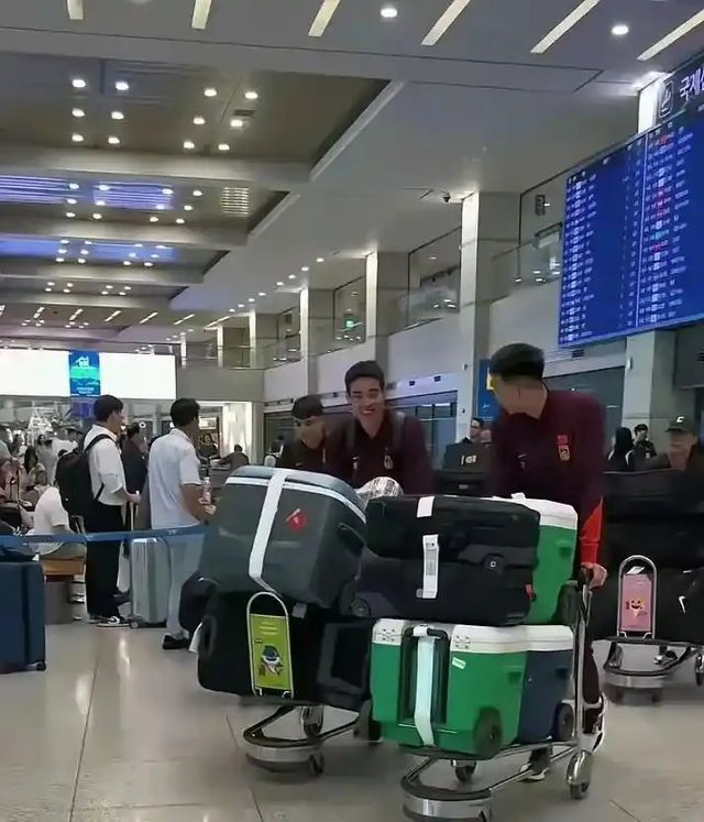 中国男篮被韩国队摁在地板上摩擦,从场上表现看明显放不开手脚,心态比较紧张。不过,场下的中国男篮球员心态却很放松,即使经历了两场惨败,丝毫没有影响球员们的好心情,从北京国际机场球迷拍摄的照片看,曾凡博购买一大箱护肤品,非常在意自己的皮肤保养,而其余队员有说有笑。