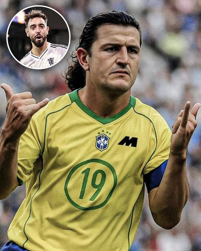 曼联队友也佩服马奎尔的历程,队长布鲁诺·费尔南德斯把马奎尔的大头合成到巴西传奇罗纳尔迪尼奥身上。防守时的马尔蒂尼,进攻中的小罗,马奎尔之伟大不言而喻。