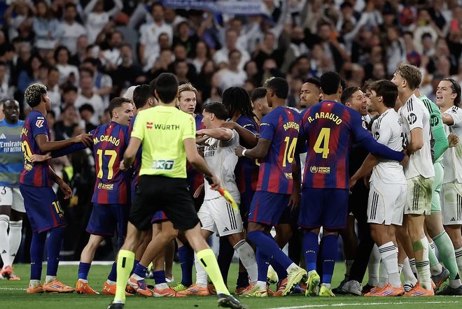雷速体育10月27日讯 本赛季首场西班牙国家德比,皇马主场2-1击败巴萨。双方球员在赛后发生大规模冲突。官方公布了本场比赛的裁判报告,详细阐明了出示黄牌与罚下判罚的依据。