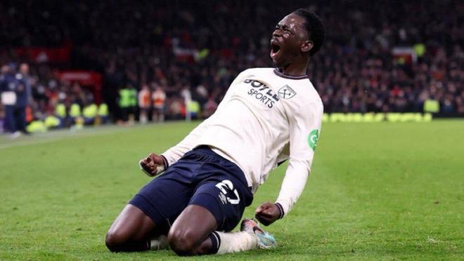 易边再战,曼联曼联继续主攻,压着西汉姆打。第58分钟,阿玛德禁区内巧妙回做,卡塞米罗远射被挡变线,皮球落到达洛特脚下,葡萄牙铁卫拔脚怒射破门,曼联1-0终于打破僵局,老特拉福德瞬间沸腾!这是达洛特加盟以来首次在老特拉福德攻入英超进球,而他也因此加入C罗、纳尼、B费的队列,成为第4位在梦剧场破英超门的葡萄牙人。达洛特疯狂滑跪,阿莫林在场边握拳怒吼,那一刻曼联真的看到了连胜的曙光。