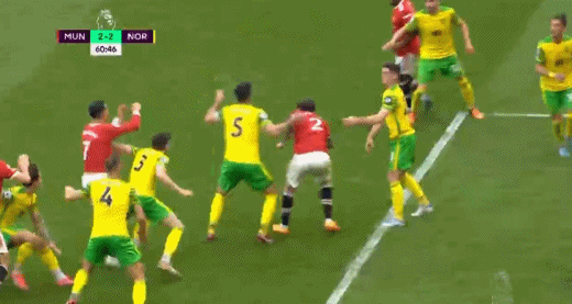 在很长一段时间里,马奎尔都是曼联这场大戏里的绝对的主角。2022年一次角球进攻中,他对博格巴下脚毫不留情,一记蝎子摆尾爆头,疼的博格巴连连捶地。